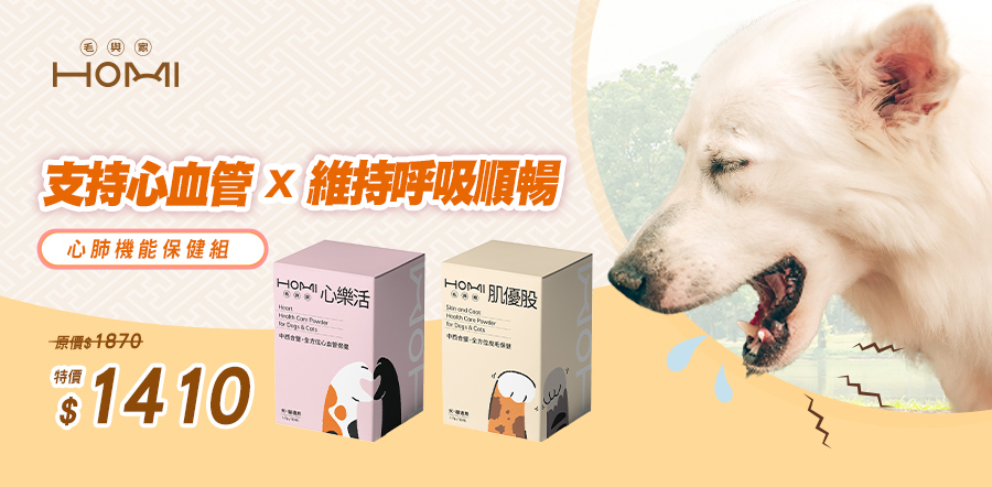 建議若毛孩出現咳嗽,應先由獸醫師檢查並確認原因。心樂活心血管保健粉適合作為循環與心血管的日常保健;若需要呼吸道與皮毛的日常支持,則可選擇 HOMI 肌優股