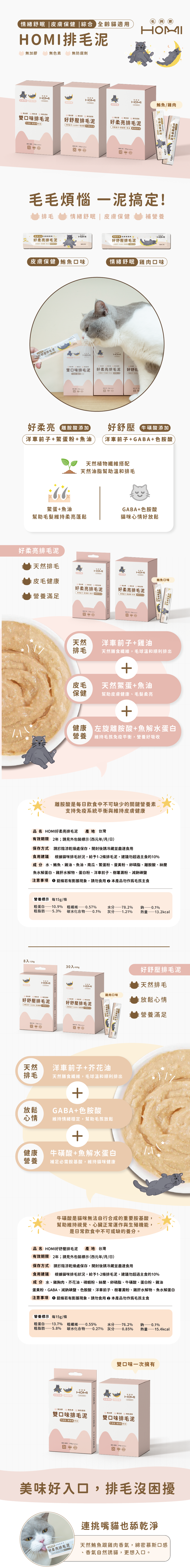 【貓咪必備組合】HOMI毛與家 泌可通+好舒壓/好柔亮排毛泥