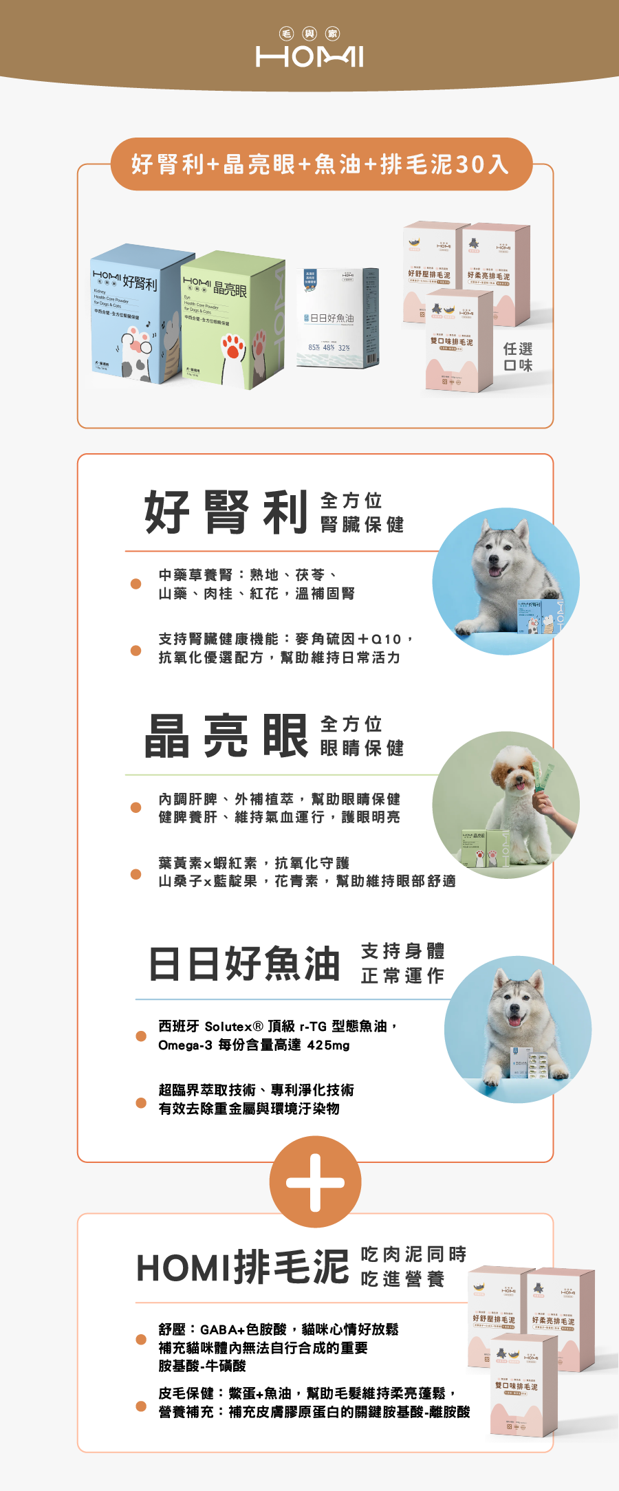 【團購】HOMI毛與家 排毛泥30入(三款任選)+好腎利+晶亮眼+魚油